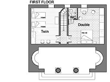 First floor: Double bedroom with en-suite bathroom with basin, bidet, toilet and shower and a bathroom with 2 beds.