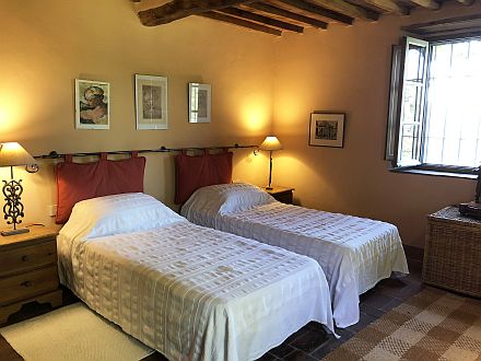 This property has been recently restored taking care of the Tuscan tradition and using only local materials. On the first floor there is a large spacious room with a well-equipped kitchen, a large dining table and a living room opening onto a panoramic terrace ideal for al-fresco dining. On the ground floor there are two bedrooms, a double with an en suite bathroom and a twin (that can be made as a double on request ) with its own private bathroom. Both bedrooms have access to another terrace and to the garden.