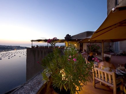 Als het Castello de poorten voor de bezoekers sluit, kunt u zich kasteelvrouw en –heer wanen; u verblijft hier in uw eigen “kasteel-appartement” en u kunt ’s avonds van de gezellige drukte in bijv. Ischia Porto genieten. Dat is vooropgesteld natuurlijk, dat u zich los kunt weken van het onbeschrijflijk mooie uitzicht vanuit uw terras; een zee in zo vele tinten blauw, scheepjes, boten, het felle roodoranje van de ondergaande zon, gevolgd door een teer roze…Een glaasje erbij, misschien wat mozzarella, olijfjes en tomaten, en – natuurlijk - de Limoncello, een citroenlikeur die lokaal wordt geproduceerd. Trouwens, ook de “echte” mozzarella komt uit deze streken; voornamelijk van het buureilandje Procida en de streken rond Napels. U zult, als u ervan proeft, het met ons eens moeten zijn: wat wordt verkocht in ons land onder deze naam smaakt eigenlijk nergens naar, daarmee vergeleken.