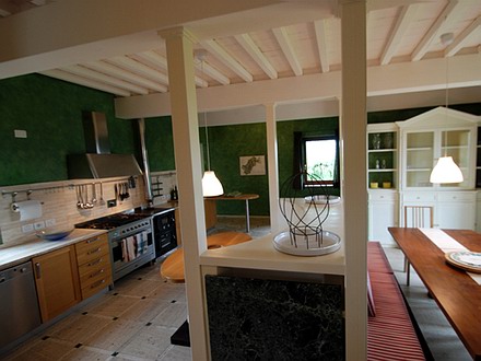 De villa is ontworpen door de Engels-Italiaanse eigenaren (tevens architecten) voor eigen gebruik. Het was de bedoeling een moderne versie van een klassieke Toscaanse villa te ontwerpen. Zij zijn daar heel goed in geslaagd en hebben een bijzonder en sfeervol bouwwerk gecreëerd. Men heeft de traditionele materialen op een andere manier benaderd en verwerkt, passend in een meer moderne indeling met bijbehorende details. De oude, nieuwe en etnische meubels en schilderijen, waaronder veel familiestukken, vormen een spannende mix en geven aan het huis een bijzondere en elegante sfeer. Er is een grote omheinde tuin en een zwembad met daaromheen gazon.