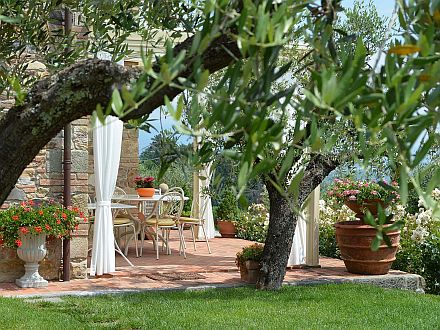 Tijdens de restauratieperiode hebben zij uitsluitend gekozen voor het toepassen van authentieke Toscaanse materialen; de inrichting is een mix van antieke meubelen met moderne faciliteiten, inclusief een flatscreen TV in elke kamer. Speciale aandacht is geschonken aan de keuken/eetkamer (een licht, comfortabel en goed georganiseerd vertrek) en aan de gemeubileerde buitenruimte, dicht bij de stenen barbecue en pizza-oven, waar u kunt genieten van heerlijke maaltijden buiten, “gelardeerd” met mooie vergezichten. Het zwembad heeft een plaats gekregen op een mooie plek in de zeer goed onderhouden tuin.