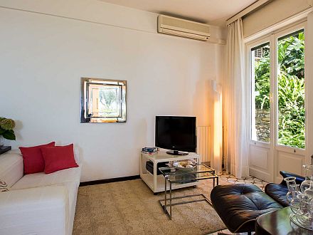Casa Riviera bevindt zich in een appartementencomplex, gelegen 10 minuten heuvelopwaarts bij Rapallo in Liguria; het appartement wordt omgeven door een tuin met uitzicht op de baai van Portofino en begroeid met olijfbomen en jasmijnstruiken. De ruime L-vormige living met openslaande deuren naar de tuin is voorzien van comfortabele banken, fauteuils en een eetgedeelte. Een gesloten veranda, waar u ook kunt ontbijten, lunchen en dineren, geeft eveneens toegang tot de tuin met uitzicht op zee. De keuken is voorzien van afwasmachine, koelkast, oven, magnetron, koffiezetapparaat en broodrooster. Het appartement is elegant, ruim en geschikt voor 6 personen. Er zijn 4 slaapkamers en 3 badkamers, er is airco in de living, er is een lift, en een parkeergarage.